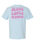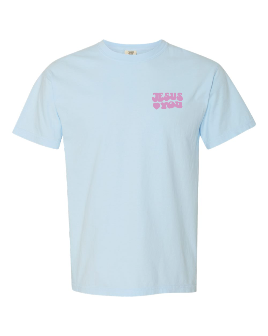 This Comfort Colors 1717 tee carries the heart of the gospel both front and back. The front declares Jesus Loves You in bold lettering, while the back features the full Scripture of John 3:16 — “For God so loved the world that He gave His one and only Son, that whoever believes in Him shall not perish but have eternal life.”